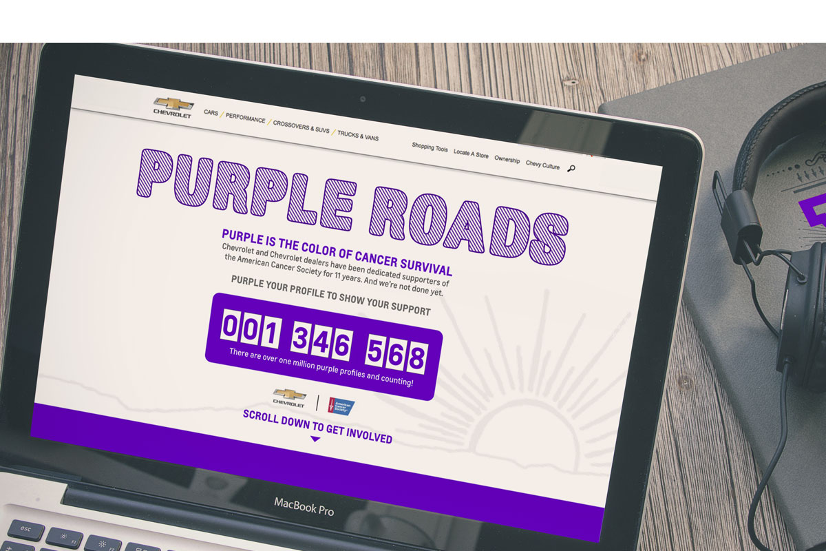 By merely turning a user’s Facebook and Twitter profile pictures purple, Chevy donated money to the American Cancer Society’s Road to Recovery Program.